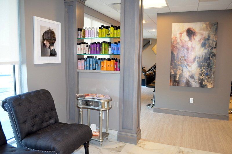 The goal with this project was to create a stylish, inviting space that carried over the elegance of the surrounding hotel. Varying shades of grey provided the perfect background for the colorful product lining the shelves, the artwork and accessories . The neutral tones were continued in the spa area, where soft grey/green walls, were paired with a number of chrome furniture pieces and additional metallic artwork.