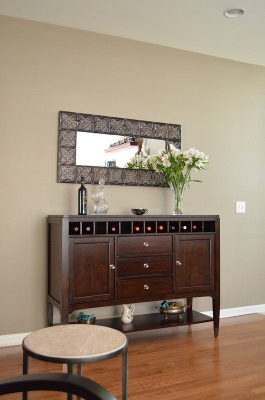 Although this patio home was barely a year old when our client decided to call it home, it did not function in a way that accommodated this bachelor’s lifestyle. The challenge was to find a way to take the “dining” out of its living/dining room combo, while maintaining a sense of separated space, rather than one long, narrow living room. The space was transitioned into a lounge area, separated by a room dividing shelving piece.